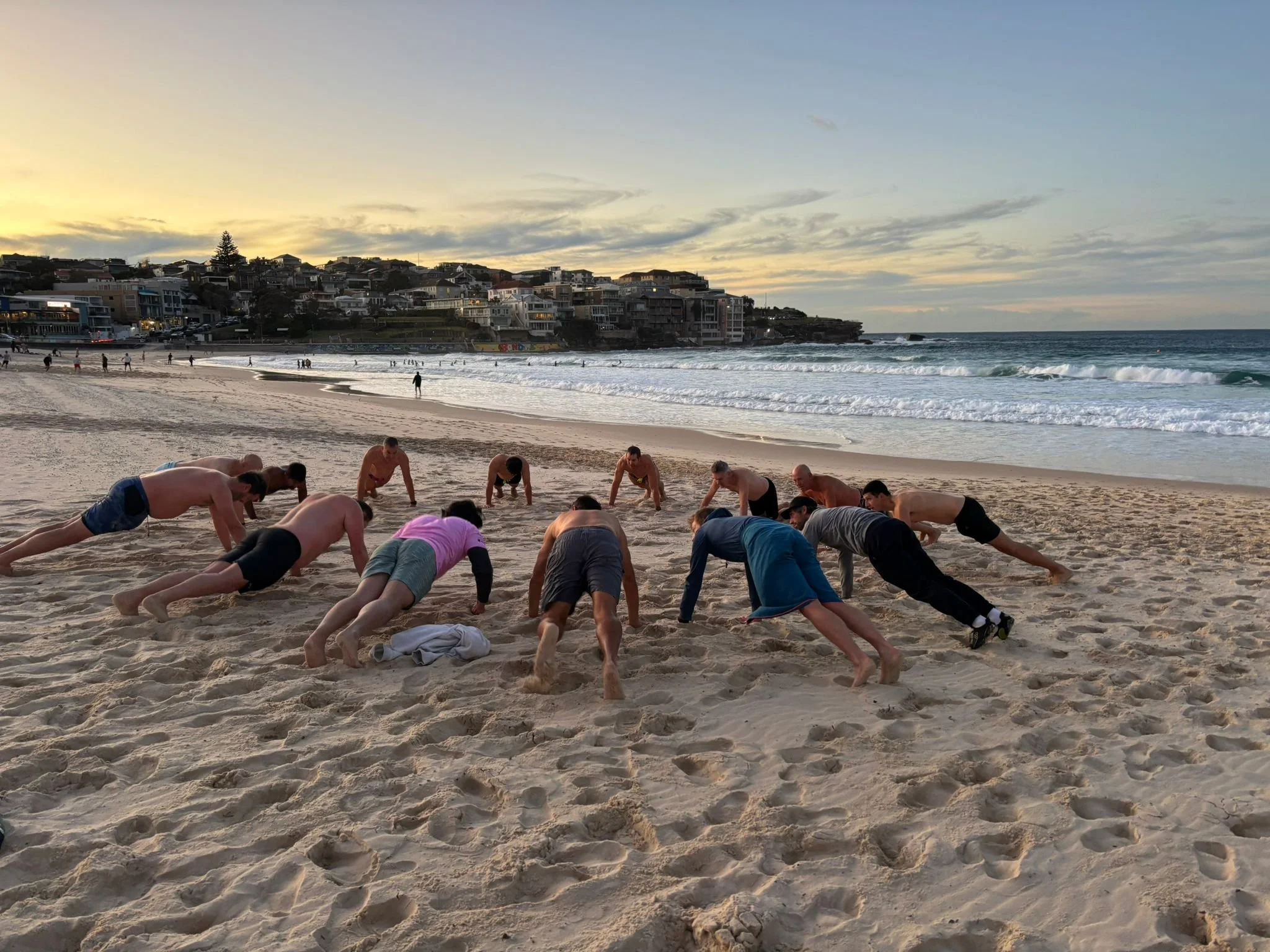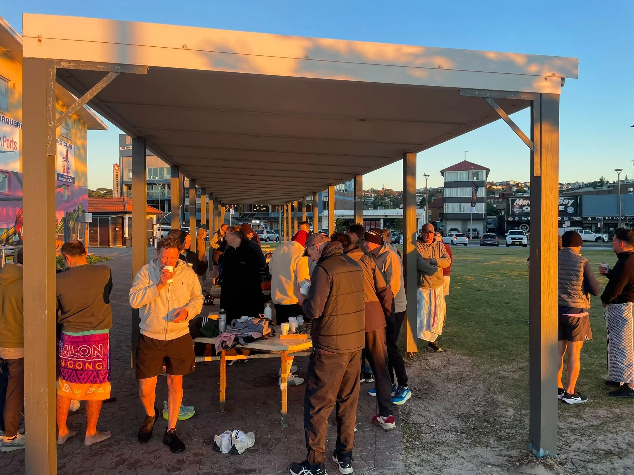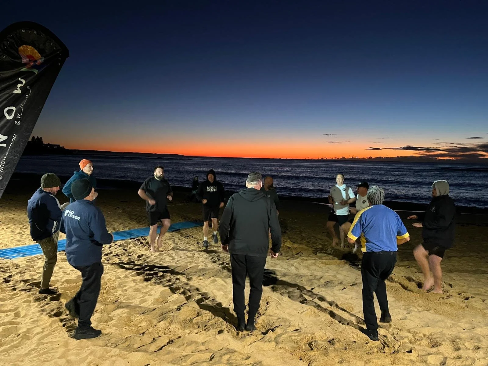 Big shout out to Paddy and the boys from Bondi. 5 new members, huge donations to the Sunrise Club fundraiser and all whilst still training on the cold sand, shirtless and barefoot.